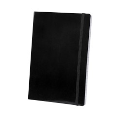 Libreta con tapas de suave tacto acabadas en cartón brillante en originales colores. De 80 hojas con distribución a una raya, con elástico de sujeción y marcapáginas de tela en elegante color negro.