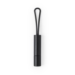 Práctica linterna de aluminio en variada gama de colores. Con luz led y cinta de transporte a juego. Pilas de botón incluidas y presentada en caja individual.