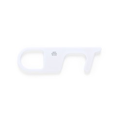 Llavero higiénico antibacteriano y anti-contacto, fabricado en resistente ABS de acabado sólido. Especialmente diseñado para evitar tocar con las manos superficies de uso común (picaportes de puertas, interruptores, grifos de uso público, cajeros automáticos...). Con cómodo troquel para el dedo y presentado en bolsita individual. Recomendado para marcaje en tampografía.Los productos con tratamientos antibacterianos son capaces de reducir drásticamente las cargas bacterianas presentes en las superficies de los materiales, gracias a la incorporación de agentes microbianos permanentes estáticos, con alta efectividad para inhibir y prevenir la contaminación bacteriana.Artículo de acuerdo al estándar ISO 22196, que determina la actividad antibacteriana en materiales plásticos y superficies no porosas, lo que permite conocer la efectividad de inhibición microbiana que tienen los aditivos sobre los objetos tratados mediante una evaluación cuantitativa.