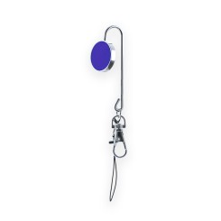 Llavero cuelgabolsos metálico con corona en polipiel de vivos colores. Con cinta de transporte de cierre de mosquetón. Presentado en estuche individual.
