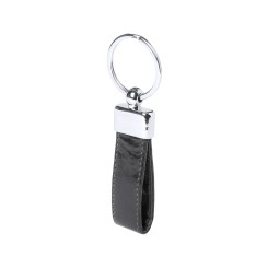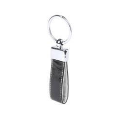 Llavero de elegante acabado en polipiel bicolor con accesorio metálico. Presentado en estuche individual troquelado.