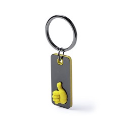 Llavero de acero inox en diseño bicolor de variados colores. De original diseño -OK- con mano en relieve y especialmente diseñado para marcaje en láser.