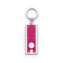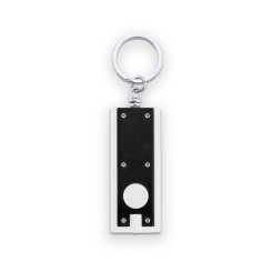 Llavero linterna led con cuerpo de suave acabado brillante en variados colores y diseño extraplano. Pilas de botón incluidas.