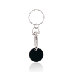 Llavero moneda metálico en divertido diseño de variados colores con moneda extraíble y cierre de mosquetón.