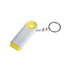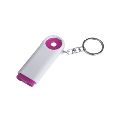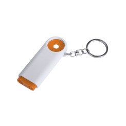 Llavero moneda en divertido diseño bicolor de variados colores, con linterna de 2 ledes y moneda extraíble. Pilas de botón incluidas.