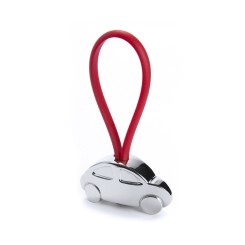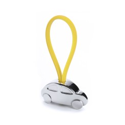 Llavero metálico en divertido diseño 3D de coche. Con cinta de goma en variados y vivos colores.