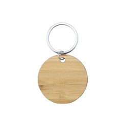 Llavero de línea nature fabricado en bambú, disponible en diseños circular, cuadrado y rectangular.