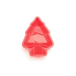 Molde de silicona en llamativo color rojo navideño con forma de árbol de navidad. Resistencia a temperaturas de hasta 240ºC.