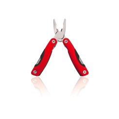 Multiherramienta con resistente cuerpo en acero inox de 12 funciones. Incluye cuchillo plano, cuchillo de sierra, destornilladores, lima, abridor y alicates. Disponible en variada gama de colores y presentada en resistente funda de poliéster y en caja individual.