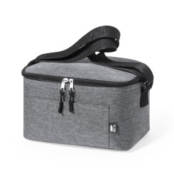 Nevera de línea nature y en resistente poliéster 600D RPET efecto melange, elaborado a partir de plástico reciclado para así fomentar la reutilización de residuos plásticos y contribuir a la sostenibilidad del planeta. Detalles en negro y base reforzada. Compartimento principal con cierre de cremallera e interior en aluminio. Incluye bolsillo exterior y cinta bandolera ajustable, con distintivo RPET en etiqueta exterior.