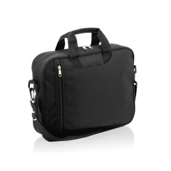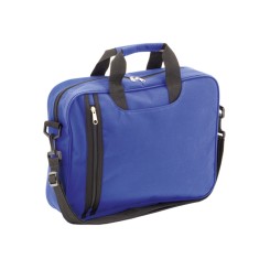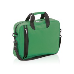 Portadocumentos de cierre de cremallera con original bolsillo frontal en vertical y compartimento bajo las asas en suave acabado de poliéster 600D en vivos colores. Con asas de transporte reforzadas a juego y cinta bandolera ajustable con cierres de mosquetón.
