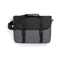 Portadocumentos de línea nature y en resistente poliéster 600D RPET reciclado y libre de PVC, fruto de la combinación del proceso de reciclaje de materiales plásticos junto con la técnica milenaria de fabricación del fieltro, dando como resultado un material de eco-tendencia de origen reciclado. Con acolchado y bolsillo principal con tiras de cierre de hebilla bolsillo interior de cierre de cremallera y cinta bandolera ajustable para hombro. Con asa de transporte reforzada y accesorio en parte posterior para ajuste en barra de trollley. Resistencia hasta 7kg, con distintivo RPET en etiqueta exterior.