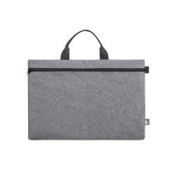 Portadocumentos de línea nature y en resistente 600D RPET efecto melange, elaborado a partir de plástico reciclado para así fomentar la reutilización de residuos plásticos y contribuir a la sostenibilidad del planeta. Detalles en negro y compartimento principal con cierre de cremallera. Resistentes asas a juego y distintivo RPET en etiqueta exterior.