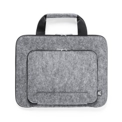 Portadocumentos de línea nature y en resistente fieltro RPET reciclado, fruto de la combinación del proceso de reciclaje de materiales plásticos junto con la técnica milenaria de fabricación del fieltro, dando como resultado un material de eco-tendencia que, además de ser de origen reciclado, también se convierte en reciclable. Bolsillos principal y frontal con cierres de cremallera y tiradores metálicos, con asas reforzadas a juego y distintivo RPET en etiqueta exterior.