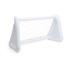 Divertida portería inflable en resistente PVC de color blanco. Presentada con plegado especial para fácil impresión.