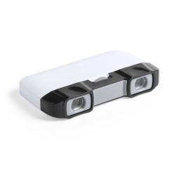 Originales prismáticos plegables con regulador de distancia y resistente cuerpo de acabado bicolor en variados colores. Presentados en atractiva caja de diseño.