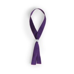 Pulsera ajustable en suave poliéster y amplia gama de colores. Con accesorio de ajuste en color plateado brillante.