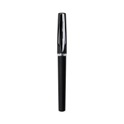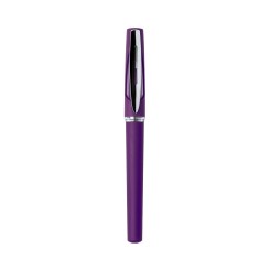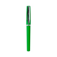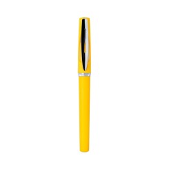 Roller de capucha de alegre diseño bicolor con cuerpo de suave acabado en llamativos colores y accesorios en color plateado brillante, con detalle transparente. Tinta gel azul.