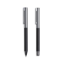 Set de bolígrafo y roller de Antonio Miró. Incluye: Bolígrafo metálico con cuerpo en negro mate. Detalles y capucha en cromado con logotipo de la marca cartucho jumbo y en tinta azul.Roller metálico con cuerpo en negro mate. Detalles y capucha en cromado con logotipo de la marca. Cartucho jumbo y en tinta azul.Presentado en elegante y resistente estuche individual negro con logotipo Antonio Miró, cierre magnético y funda de protección a juego.