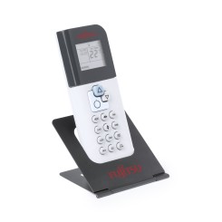 Soporte plegable en aluminio de sobrios colores. Válido para mandos a distancia u otros dispositivos. Presentado en caja individual.