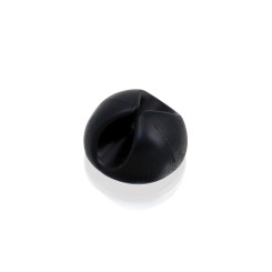 Soporte adhesivo multifunción en suave caucho. Válido como soporte para mascarillas, lanyards, soporte para cables… Disponible en acabados blanco y negro.