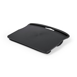 Práctico soporte para ordenador. Fabricado en material antideslizante, con marco de seguridad en los laterales. Zona de apoyo para las piernas con acolchado y asa de transporte incluida.