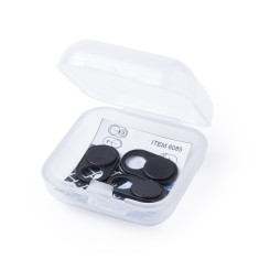 Tapa para cámara de dispositivo móvil para proteger la privacidad. En tamaño ultra compacto y servida en estuche individual de achado translúcido con 3 piezas. Disponible en colores blanco y negro, set presentado en bolsita individual con cartulina de diseño.