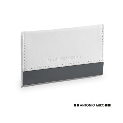 Tarjetero con espejo de Antonio Miró en suave polipiel de acabado en color blanco, con chapa exterior metálica para marcaje en láser.