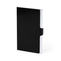 Elegante tarjetero con cuerpo en acabado bicolor de aluminio y elegantes colores. Con sistema de cierre a presión y presentado en elegante caja individual plateada.