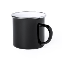 Taza metálica de 380ml de capacidad con diseño vintage y acabado con imperfecciones para mayor sensación retro. Disponible en variada gama de colores, con interior siempre en color blanco y elegante detalle en cromado. Presentada en caja individual.