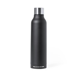 Termo en acero inox de Antonio Miró. De 500ml de capacidad y con doble pared para mejor y más duradera conservación de la temperatura. De sobrio acabado en negro satinado, logotipo de la marca en la base y con tapón cromado a rosca. Presentado en atractiva caja de diseño con logotipo de la marca.