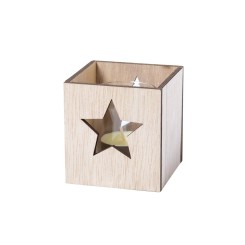 Vela aromática navideña de línea nature y aroma vainilla. Fabricada en cristal, con caja de madera troquelada y original diseño. Presentada en caja individual de color natural.
