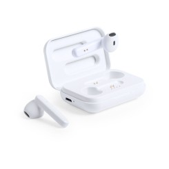 Auriculares intraurales en elegante acabado blanco y conexión Bluetooth 5.0. De diseño ergonómico, incluyen botón de control táctil integrado en el auricular, con base de carga a juego. Función manos libres y recargables, con cable micro USB incluido. Presentados en estuche individual de lujo con tapa de bisagra y en atractiva caja de diseño.